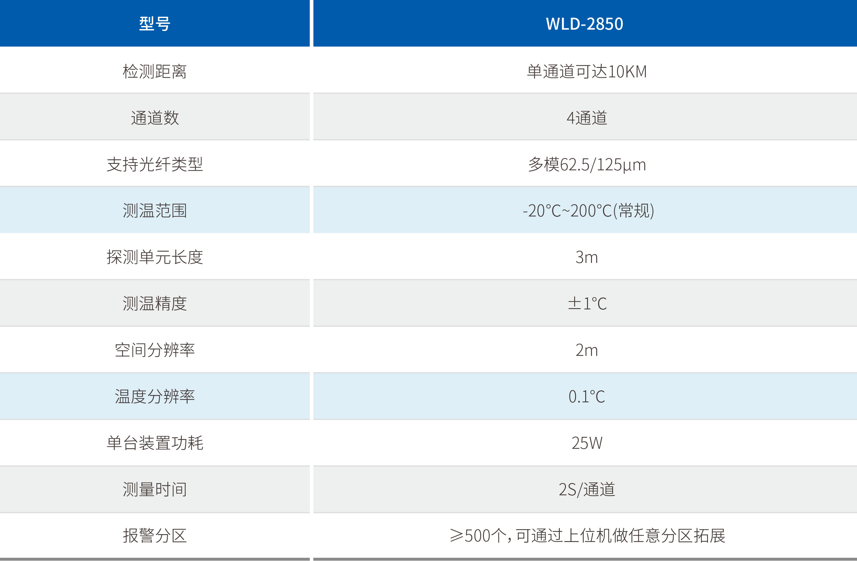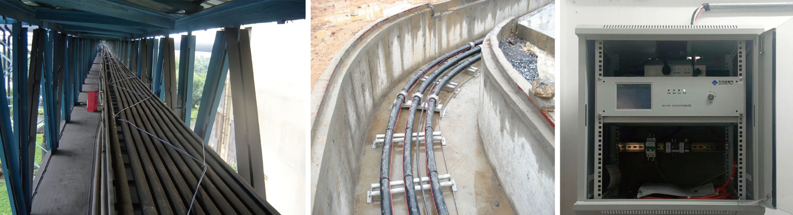 分布式光纤测温装置能够检测所接触电缆本体表面温度并进行定位,对在测线路进行标定、分区、按分区进行监测,具有报警功能,可以提供断纤位置数据,同时可与消防设备或其他控制设备进行联动,并通过通讯的方式将主机信息上传至分析平台。
